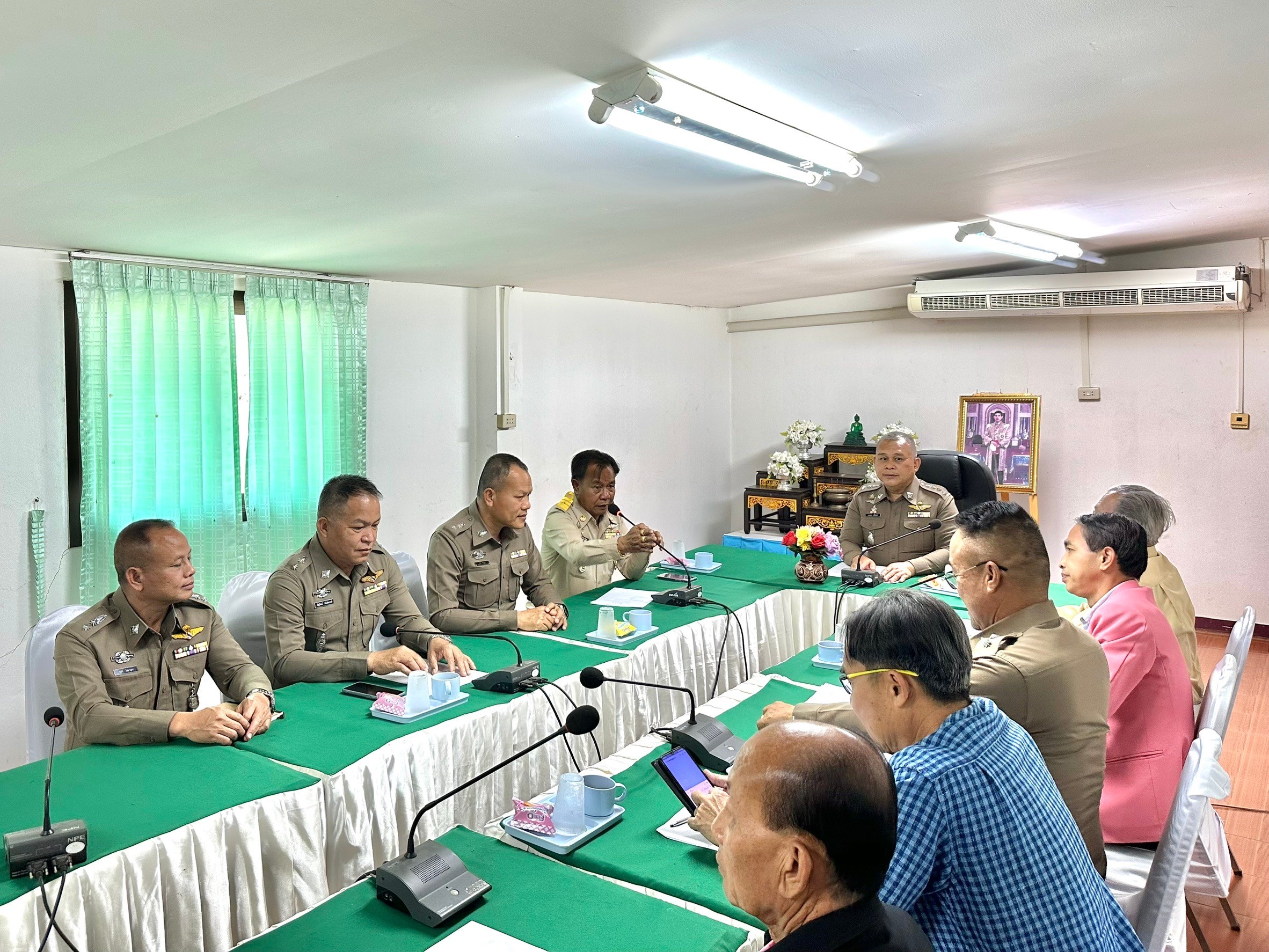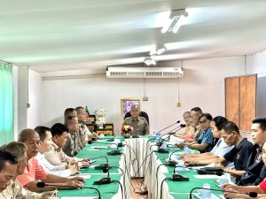 (6 ก.พ. 68) เวลา 15.00 น.🔶 พ.ต.อ.ปภาวิน ไชยคำภา ผกก.สภ.ขมิ้น, พ.ต.ท.พินิจ ชินบุตร รอง ผกก.ป.ฯ, พ.ต.ต.ภัทราวุธ บุญไชยโย สวป.ฯ ร่วมกับนายก อบต.ขมิ้น รองนายกองค์การบริหารส่วนตำบลขมิ้น รองนายกเทศมนตรีดงมะไฟ กำนันตำบลขมิ้น กำนันตำบลหนองลาด กรรมการที่มาจากการคัดเลือก และผู้มีส่วนที่เกี่ยวข้อง เข้าร่วมประชุมคณะกรรมการตรวจสอบและติดตามการบริหารงานตำรวจ (กต.ตร.) ของสถานีตำรวจภูธรขมิ้น เพื่อติดตามผลการประชุมจากวาระห้วงไตรมาสที่ 2 ณ หอประชุม อบต.ขมิ้น🔶 โดยมีนายวิศรุต แก้วฝ่าย ประธาน กต.ตร. เป็นประธานการประชุม